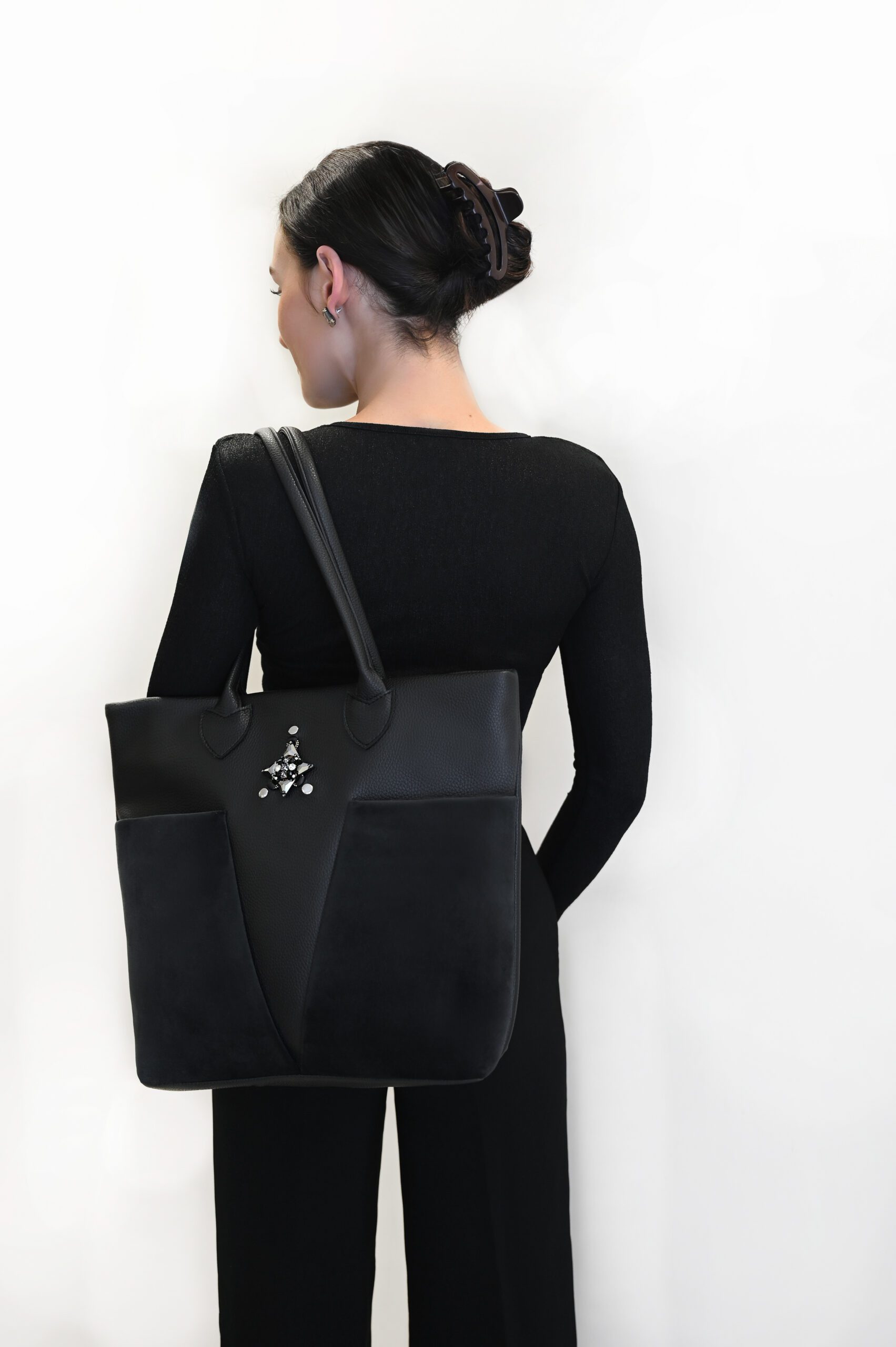 Galvenās īpašības: Dizains: Klasiska melna krāsa un smalkas detaļas piešķir somai izsmalcinātu eleganci. Funkcionalitāte: Lielā priekšējā kabata nodrošina ērtu piekļuvi bieži izmantotām lietām, bet iekšējā kabatiņa pasargā jūsu mantas. Materiāls: Augstākās kvalitātes āda garantē izturību, un maigais oderējums aizsargā jūsu mantas. Praktiskums: Soma ir ideāla ikdienai un ceļojumiem, apvienojot komfortu ar stilu.