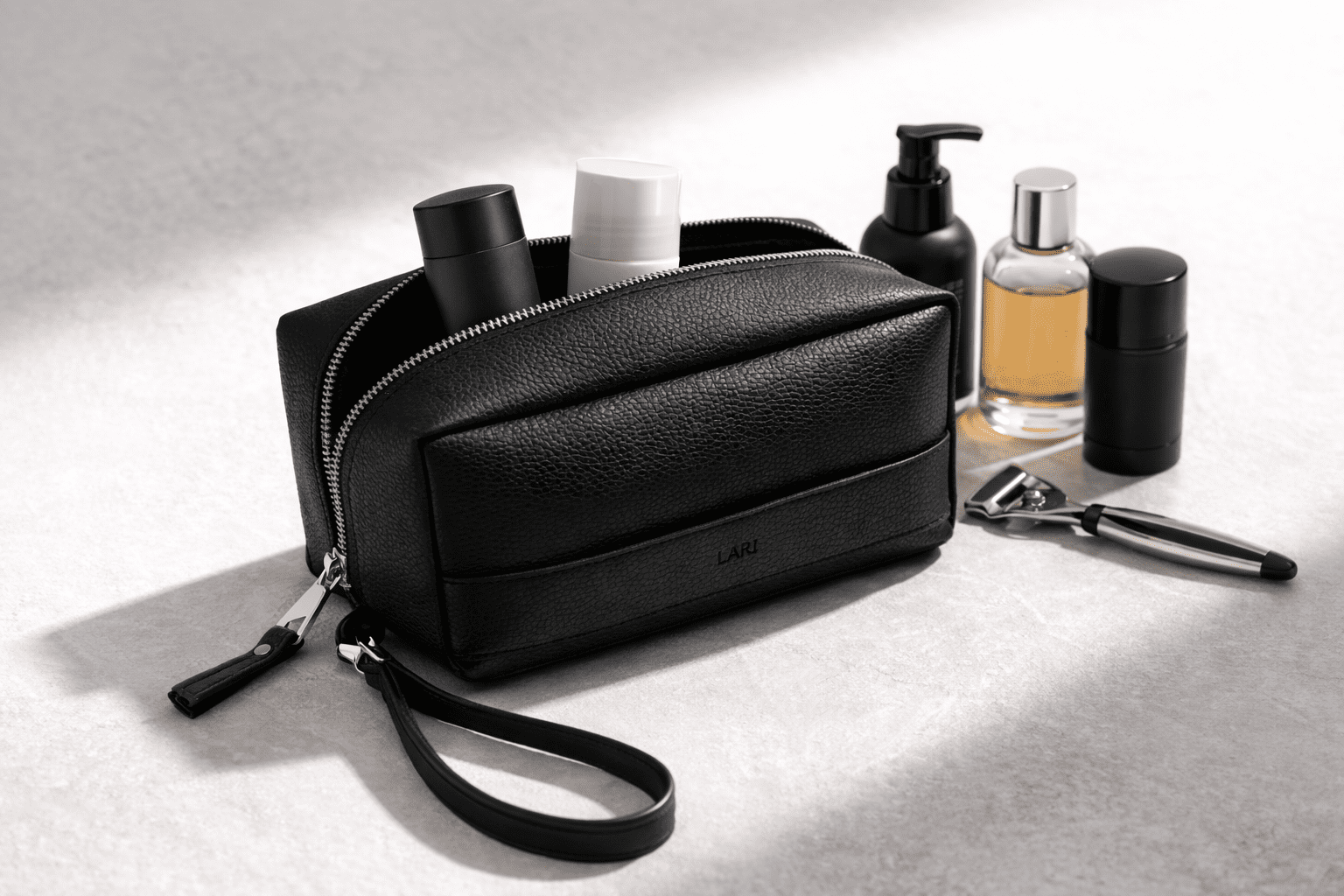 Kārtība, funkcionalitāte un smalka elegance – tas viss vienā LARI vīriešu kosmētikas somiņā, kas radīta mūsdienīgam vīrietim.