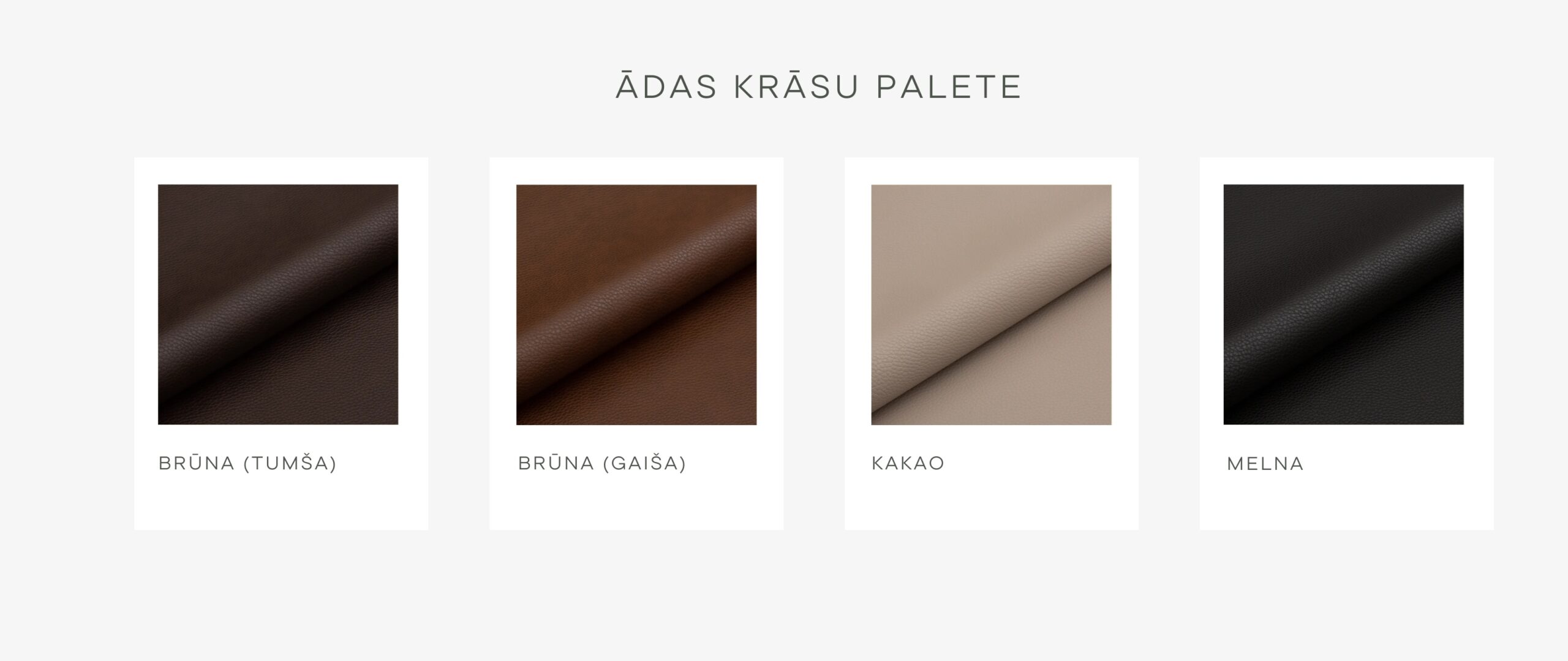 • Dabīgā āda – klasiska izvēle tiem, kas novērtē ilgmūžību, autentiskumu un smalku greznību.
